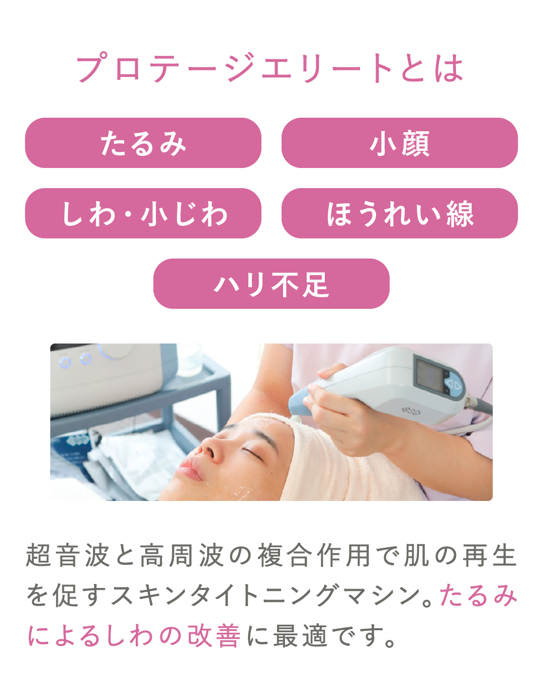 プロテージエリートは、高周波と超音波の2種類の波長を一つのハンドピースから同時に照射するスキンタイトニングマシン💆♀️
