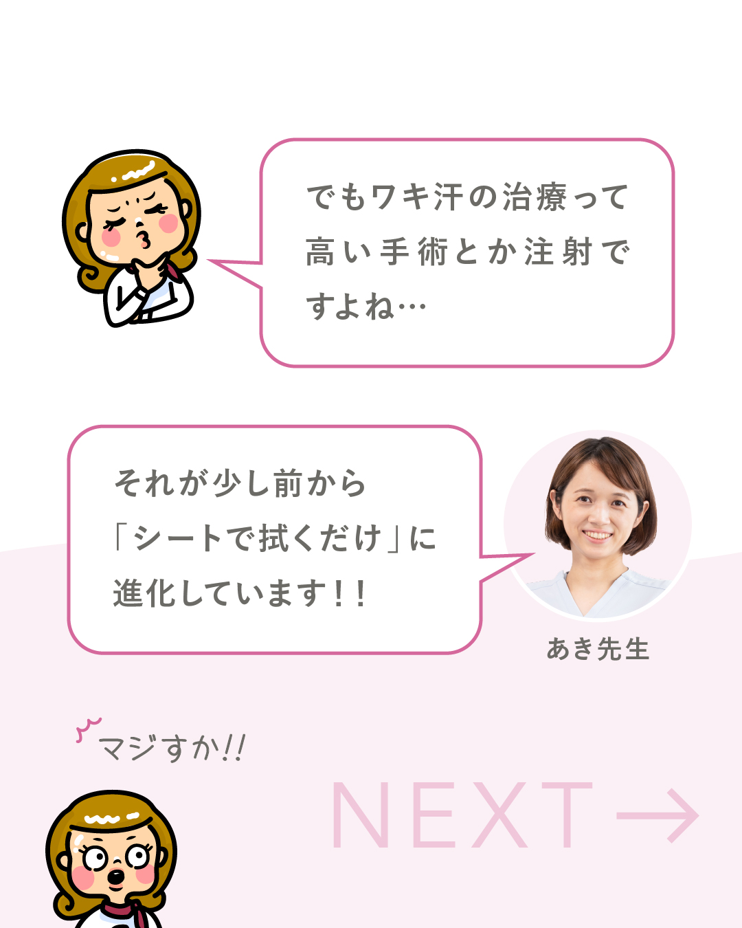 ところで、「多汗症治療」といえば少し前までは手術や注射など、ハードルの高い方法しかありませんでしたが、少し前から✨1日1回ふくだけ✨と、とても手軽になり