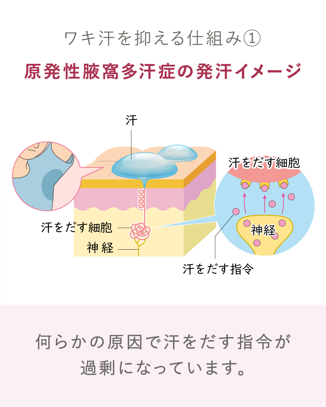 となると、気になってくるのが汗。特にワキ汗は、制汗剤を使っても量が多かったりニオイが出たりして服を選びにくくなったり、人目が気になったりと、お悩みにも繋がりやすいものです。